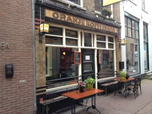 We drinken een biertje en een wijntje en laten ons onderdompelen in de ambiance van dit kleine café vol stamgasten. Arnhem op haar smalst. De muziek is vaak droevig, soms een beetje eentonig, maar steeds boeiend genoeg om te blijven. Even stroomt het kroegje vol met Amerikanen. Ze blijven maar één drankje, wat niet erg is want ze passen niet in het geheel. Misschien doen wij dat ook wel niet. Maar we blijven zitten, observeren en genieten. Het Oranje Koffiehuis is het oudste kroegje van Arnhem. Zo kom je nog eens ergens.